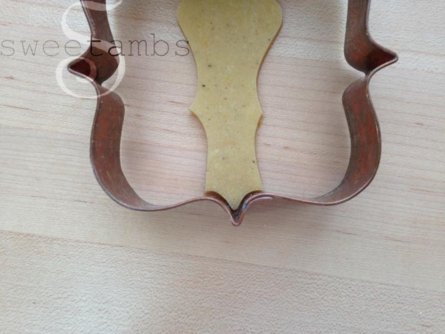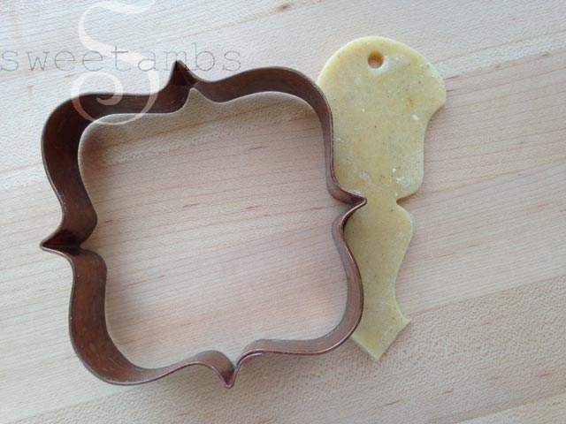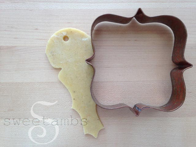 - Fancy square cookie cutter or your favorite ornament shaped cookie cutter
